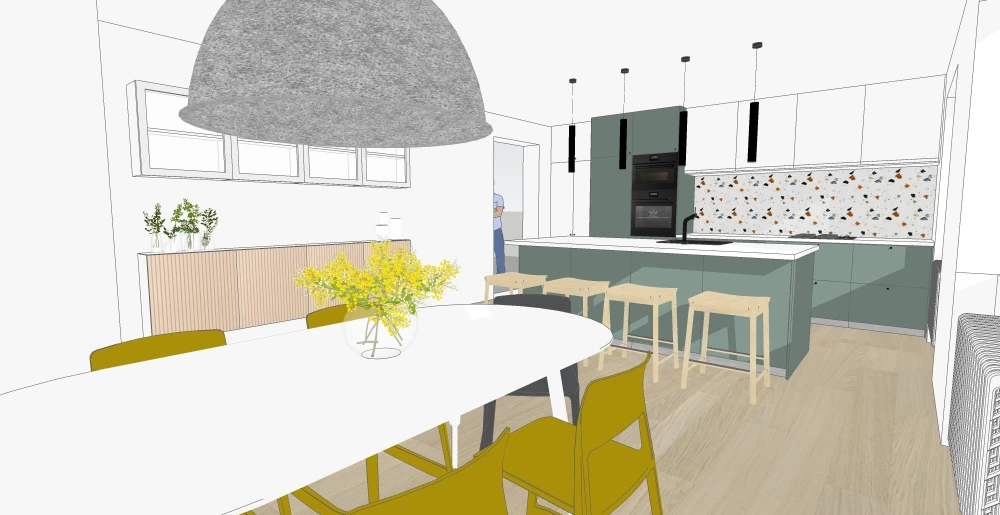 Kuchyň s jídelnou v rodinném domě pro čtyřčlennou rodinu (2022)