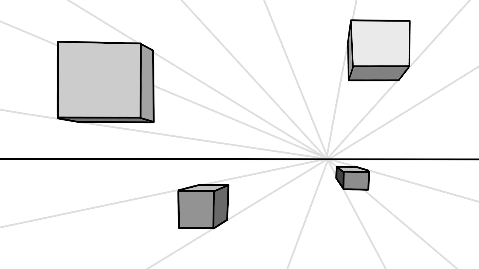 Můžeš se naučit jedno-, dvou- a tříbodovou perspektivu. V jednobodové perspektivě používáme jako ohnisko pohledu jeden mizivý bod; ve dvoubodové perspektivě vidíme dvě strany objektu, a proto používáme dva mizivé body.
