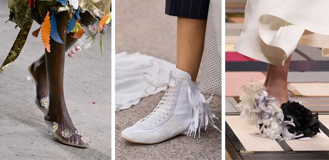 Boty z kolekcí Bottega Veneta, Stella McCartney a Louis Vuitton, SS25.