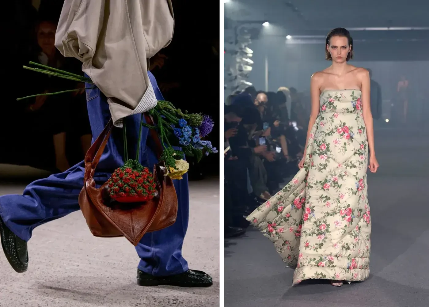 Květiny v kolekcích Bottega Veneta a Vetements, SS25.