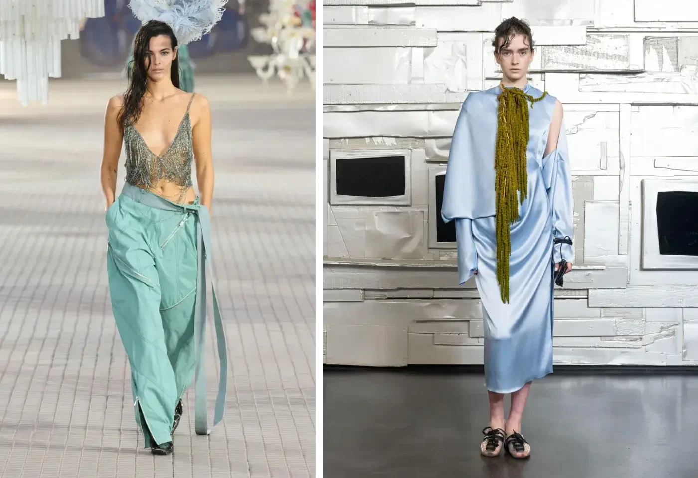 Modrá a zelená v kolekcích The Attico a Litkovska, SS25.
