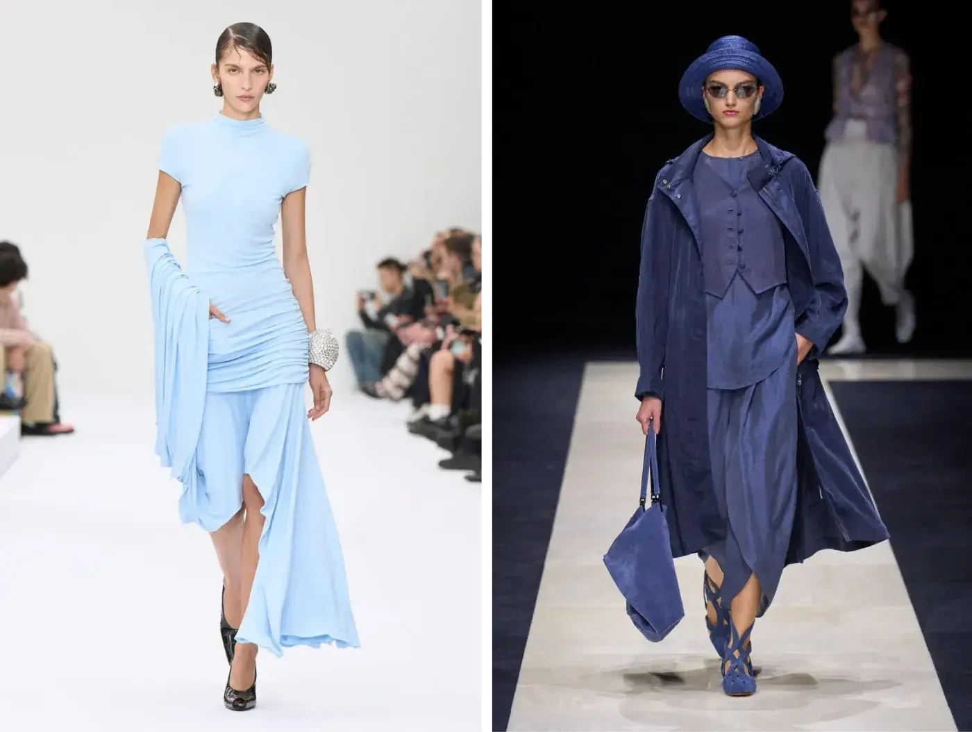 Modrá barva v kolekcích Acne Studios a Emporio Armani, SS25.
