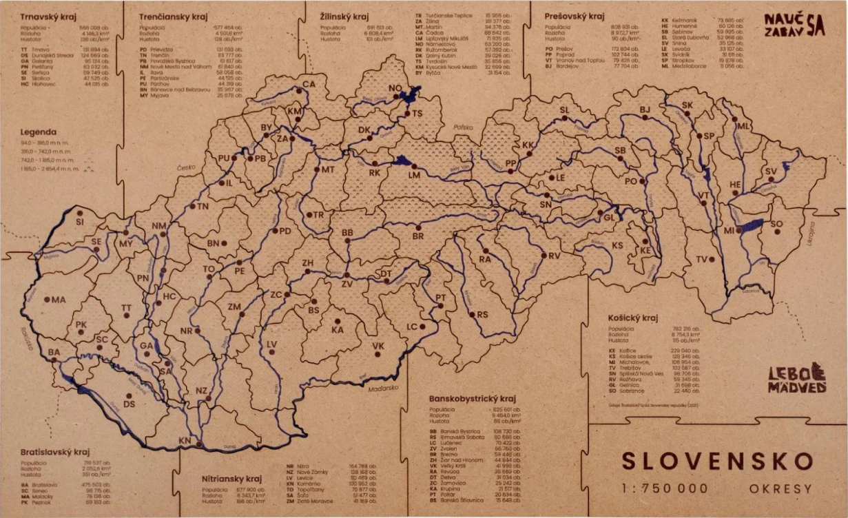 Súčasná podoba prvej hry Mapucle Slovensko okresy