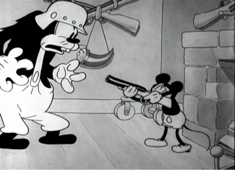 Dokonce i Mickey Mouse měl několik násilných scén. V prvních dílech se hlavní hrdina pere, nutí Myšku Minnie, aby ho políbila, a šílený doktor pronásleduje Pluta, Mickeyho psa. Walt Disney násilí pojal s humorem. Ale pořád to bylo násilí.
