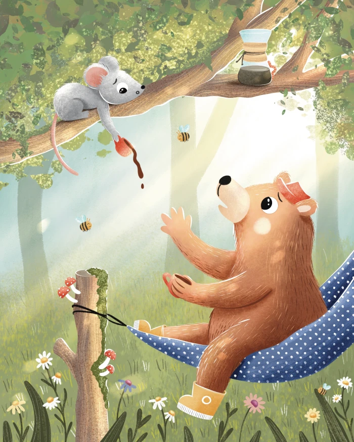 Znie to možno ako klišé, ale inšpiráciu čerpám zo života okolo seba – z prírody, z mojich detí a z pozorovania ľudí. To je pre mňa tá najväčšia inšpirácia. Potom si sadnem, skicujem, premýšľam... a mojím malým rituálom je káva. Dobrou kávou začínam každú ilustráciu.