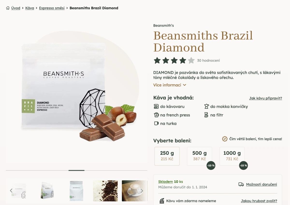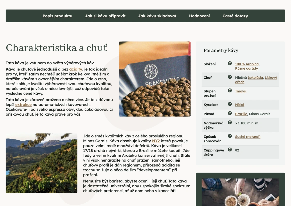 Tady se tvoří design! Čekají tě živé lekce se zkušenými lektory, kteří ti předají reálné insighty z projektů. A hlavně – celý kurz tě bude provázet vlastní projekt. Navrhneš produktovou stránku e-shopu s kávou a příslušenstvím.