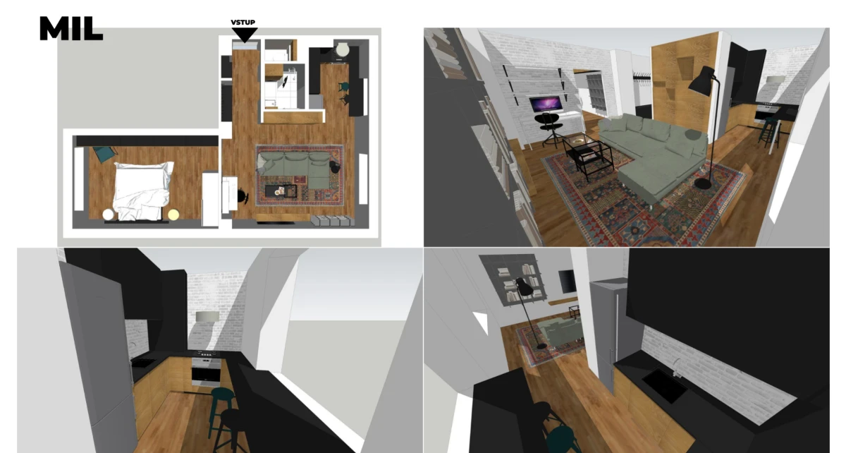 V kurzu se naučíš pracovat v programu SketchUp a navrhneš obývací pokoj s kuchyní. Tvoje návrhy budou promyšlené do posledního detailu – krásné, funkční, ergonomické.